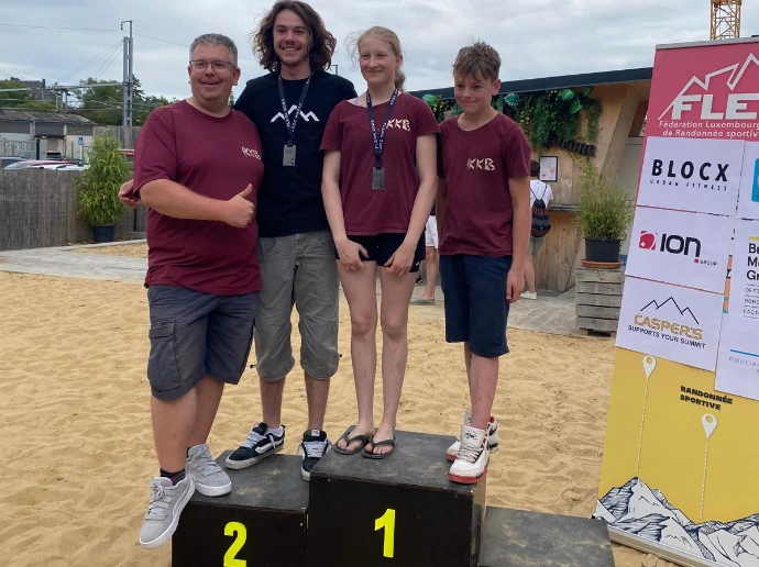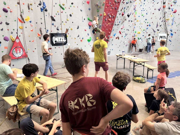 Frëndlech Kompetitioune am Klammen a Bouldere, wou Spaass, Fairplay an d’Freed um Sport am Virdergrond stinn.